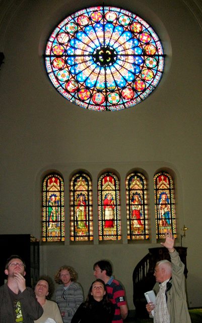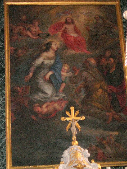 of een kerk binnenstappen en een fraai schilderij bekijken