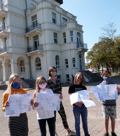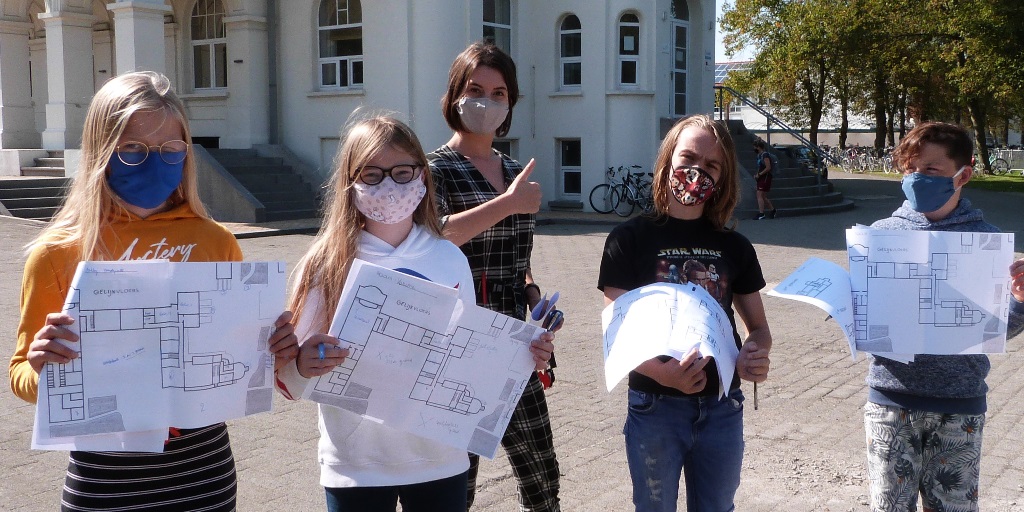 Ik nam hen mee op wandel op het domein en door het gebouw, gewapend met een plattegrond van de school. Deze opdracht had als doel om hen te leren oriënteren op een ‘kaart’ / plattegrond; zo duidden ze met nummertjes enkele belangrijke plaatsen aan.