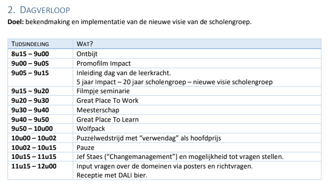 07/10// STUDIEDAG, vooral over IMPACT, de scholengroep waartoe ook het GO!Bl’b behoort… met filmpjes over 5 j. IMPACT, 20j. SCHOLENGROEP, over de nieuwe visie. In alle IMPACT-scholen had een gelijkaardige studiedag plaats