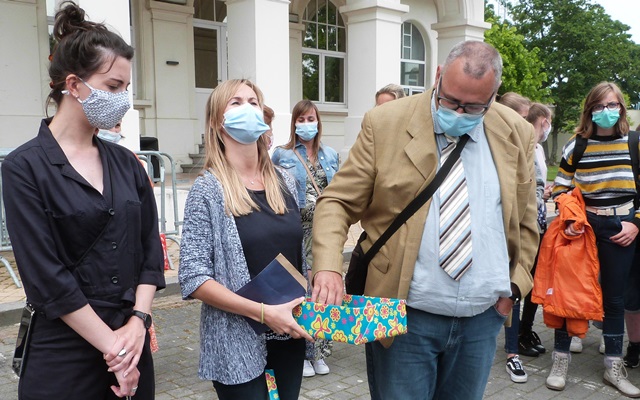 Lerares Nederlands/Frans, Sharon Deserranno, schrijft: “om 12.55u zullen we twee prijzeaan leerlingen uit de complimentenbox uitreiken.