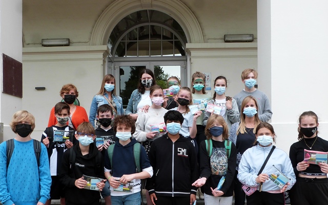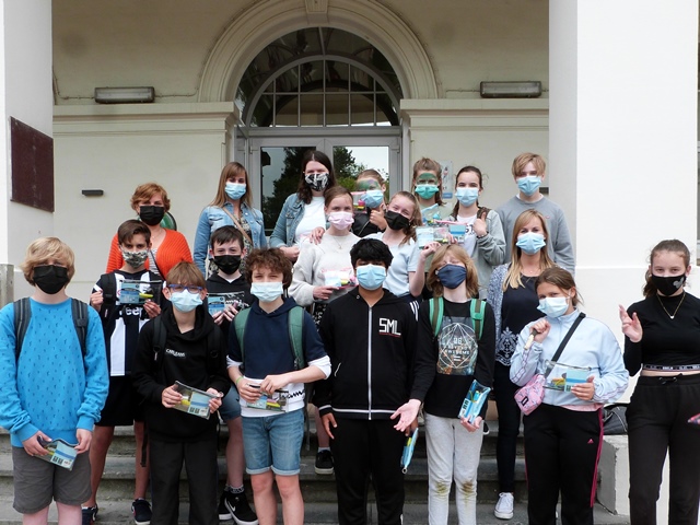 Elke leerling kreeg een transparant etui gevuld met schrijfgerei en als extraatje een snoeprolletje Mentos.