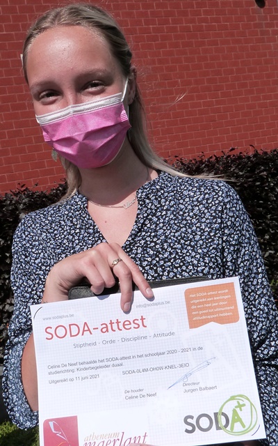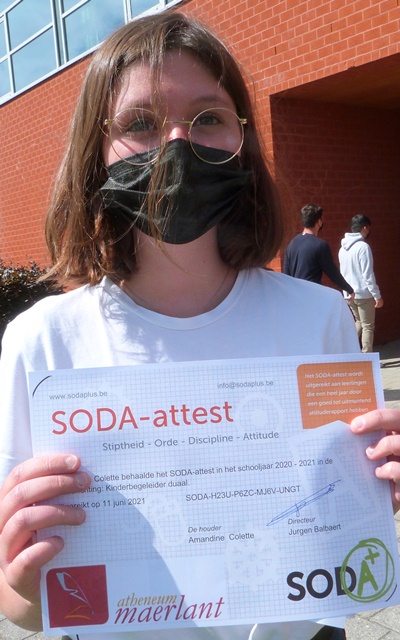 Dit schooljaar reikte het Maerlant-atheneum in zijn afdeling BSO voor de vijfde keer SODA+ attesten uit. Dit is een bijkomende alternatieve evaluatie van ‘stiptheid, orde, discipline en attitude’ voor leerlingen die na hun secundair meteen op de werkvloer terecht komen. Vier keer per jaar krijgen de leerlingen een SODA+rapport. SODA+jobs koppelt daar via een website https://sodajobs.be een beloning aan vast. Bedrijven kunnen de leerlingen met een SODA+attest vinden op de website en hen contacteren voor een vakantiejob of echte baan. Bedrijven hebben dat natuurlijk graag, leergierige afgestudeerden met de correcte werkhouding. Vandaar het succes van het project, nu ook al in West-Vlaanderen. HET MAERLANT-ATHENEUM is een van de eerste scholen in de regio Brugge – kust die in dit project stapten.