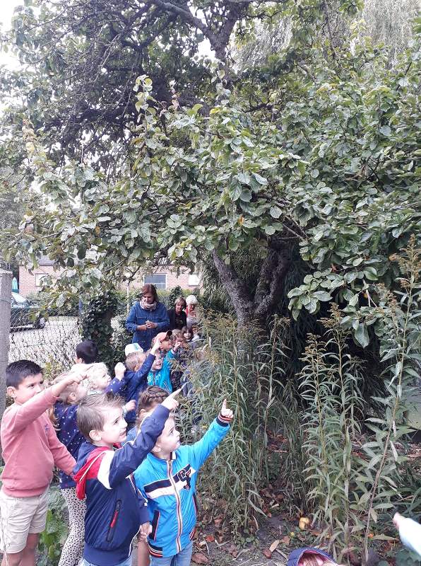 Op 23 september maakten de kleutertjes van BSGO Zilvermeeuw een leerwandeling naar de boomgaard en de moestuin. Bij Joselyn, de moeder van juf Marilyn  en Joffrey Willem (oud-lln. 1994 en 1990), de oma van Emma, oud-lle 2020 en Thomas T’Joens, ll. 5SW en van Brecht Willem, oud-ll. 2020 en Thiemen, ll. 5WeW,  konden zij o.a. appelbomen, perenbomen en een notenboom waarnemen. In de moestuin konden ze  (we) proeven van de lekkere tomaatjes en vertelde de gastvrouw wat er nog allemaal groeide.