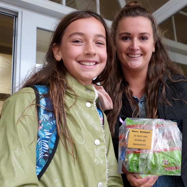 In de 1ste gr. van het Maerlant-ath. lag het initiatief bij de LEERLINGENRAAD. Voor elke leerkracht als attentie een zakje met snoepjes
