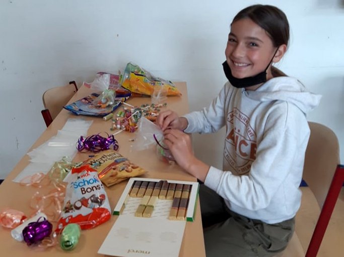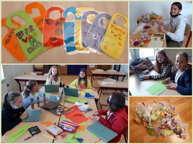 DAG VAN DE LEERKRACHT: leerlingenraad 1ste gr. Maerlant-ath. maakte de geschenkjes voor de leerkrachten klaar.