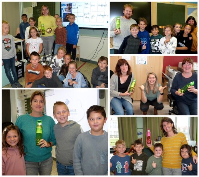 Directrice Lindly Van Reck schonk elk personeelslid een fles met een boodschap (herinnerend aan de film MESSAGE IN A BOTTLE) én met lekkere snoepjes