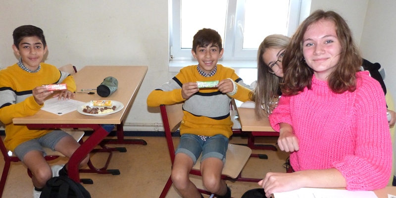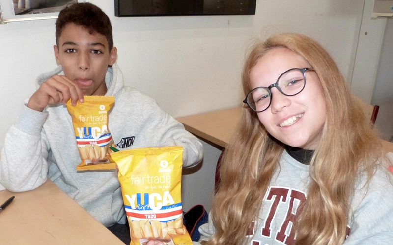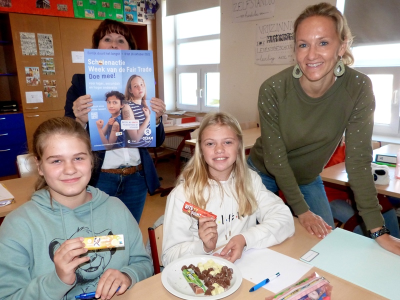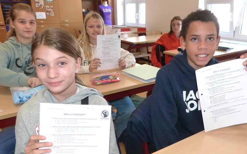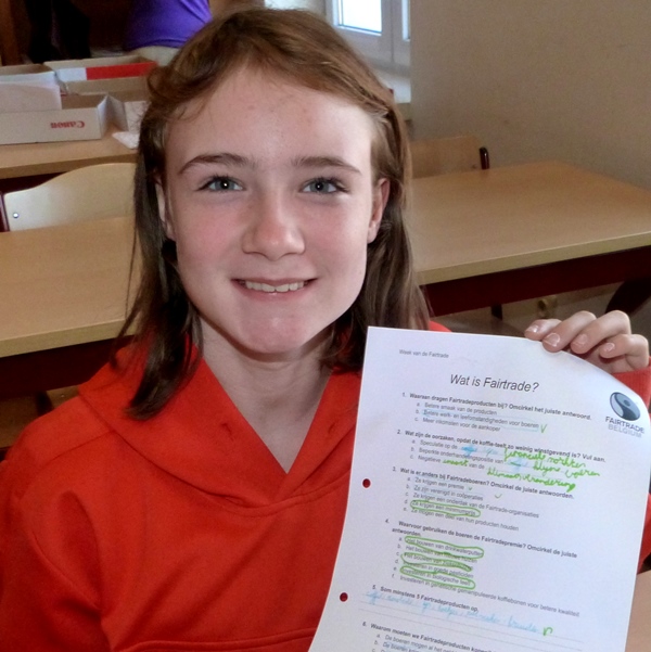 Naar aanleiding van de week van de fair trade kwamen gemotiveerde leerlingen 6des uit de leerlingenraad – Sofie Stockman en Kimberly Cleymans– a.d.h.v. een powerpoint, die ze zelf gemaakt hebben, uitleggen wat fair trade is en wat het belang ervan is. De leerlingen mochten enkele faitradeproducten proeven.