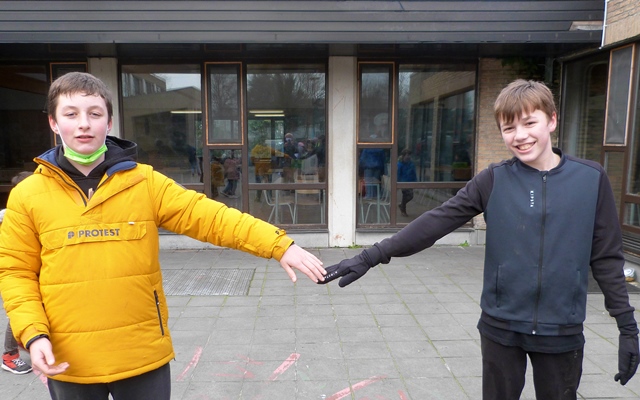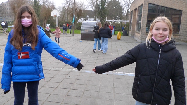 We liepen de eerste schoolochtend van 2022 op de speelplaats van de Zilvermeeuw-basisschool GROENESTRAAT We zagen niemand iemand kussen, niemand de rechter- noch de linkerhand schudden. Het waren door de jaren heen op zo’n dag de vertrouwdste gebaren