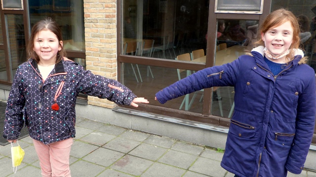 Wel zoomen, skypen, anderhalvemeterafstandsgroeten… NIET kussen, knuffelen, handen drukken, wel groeten van VERRE de eerste schooldag van 2022 in de Zilvermeeuw-basisschool Groenestraat