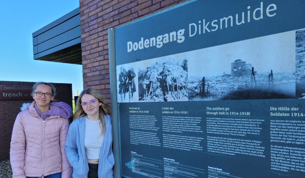 De leerlingen uit 6T/A van het Maerlant-atheneumvernamen van lerares geschiedenis Magali Hawkins dat de naam DODENGANG niet slaat op het feit dat soldaten die de loopgraven verlieten, over dode medestrijders moesten lopen, maar op het feit dat er enkele soldaten begraven waren toen men de constructie er ging bouwen Ze zagen de MUIZENVAL,waar Duitse loopgraven en Belgische ontzettend dicht bij elkaar waren gelegen, allebei aan een kant van de Ijzer.