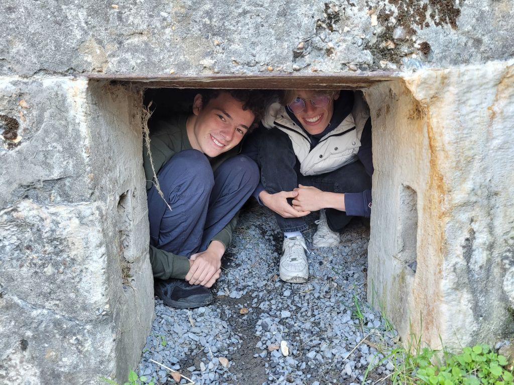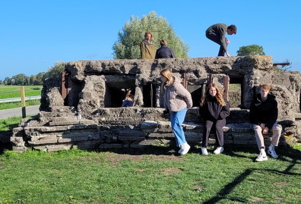 Ze hoorden ook dat deze DODENGANG een reconstructie is, dat de zandzakjes van toen nu met cement gevulde zakken zijn. Misschien kennen ze nu ook het Franse, Engelse en Duitse woord voor DODENGANG.