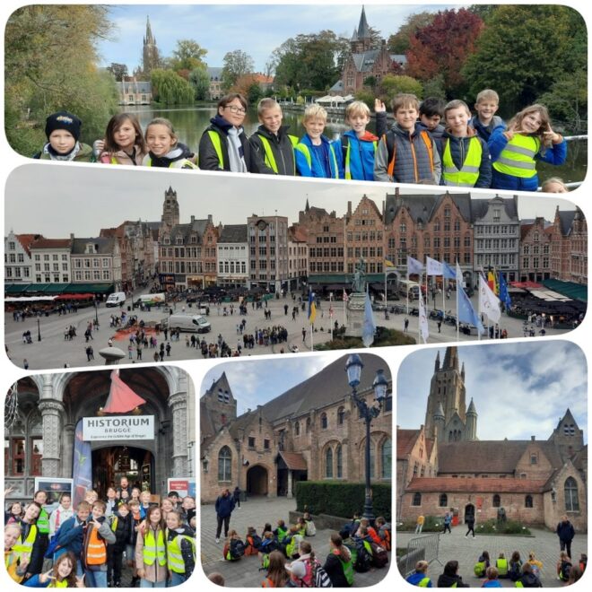 Meester Joeri schrijft me: de twee vijfdes trokken met de trein naar Brugge. Na een historische wandeling bezochten we HISTORIUM. De leerlingen kregen er ook een virtuele rondleiding door Brugge a.d.h.v. vr-brillen. Een leuke beleving. We zagen alleen maar blije gezichtjes