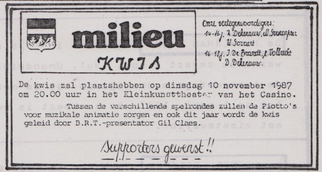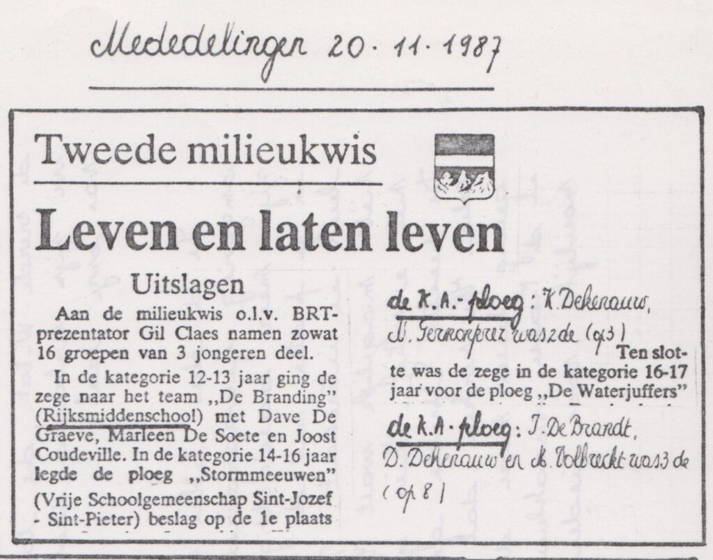 En dit lezen we in MEDEDELINGEN – een jaar later kregen die de naam MAERLANTKRANT – 30 okt. en 20 nov. 1987