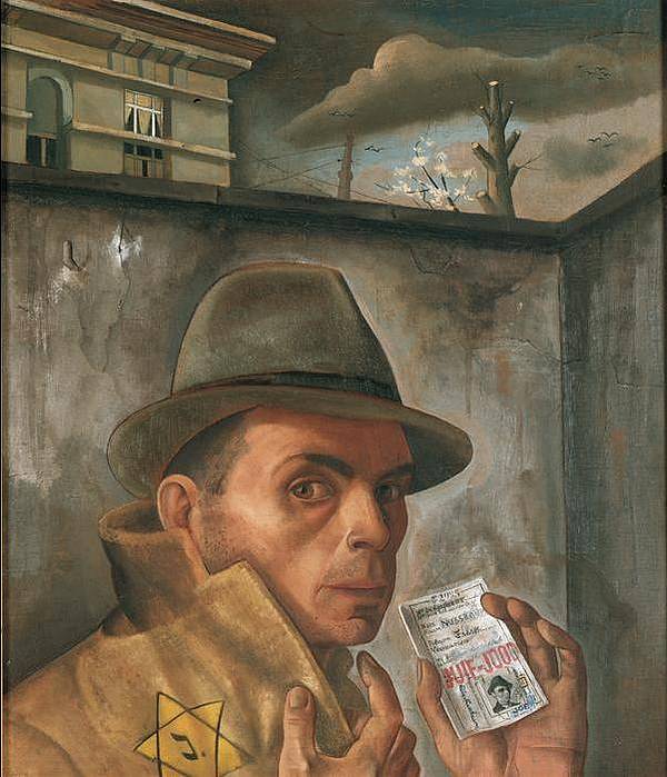 Met het schilderij DE VLUCHTELING,  al uit 1939, toonde F. Nussbaum al dat hij zonder hoop – zijn hoofd in zijn handen, hopeloos –  gevangen zit, dat de wereld – een wereldbol tegenover de kamer, als een gevangeniscel – onbereikbaar is.