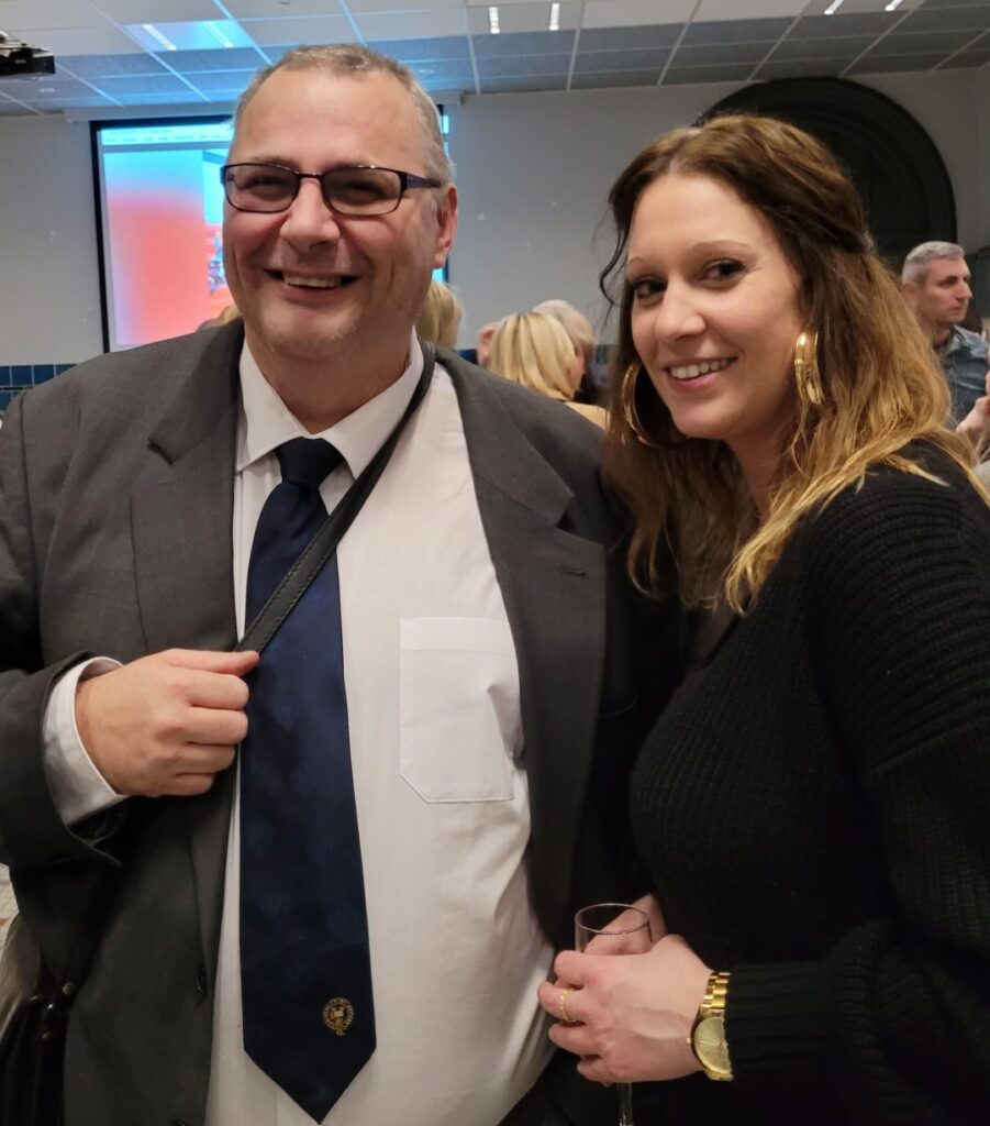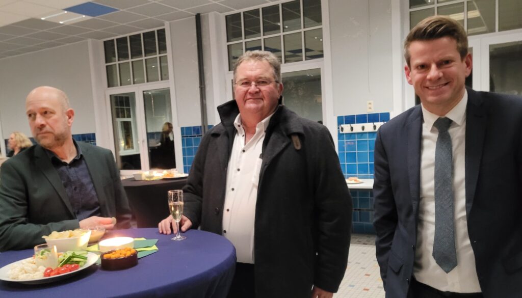 De toespraak van David Dehenauw was uitzonderlijk kort, doordat ziekte hem kwelde, waardoor hij maar even op de receptie aanwezig was.