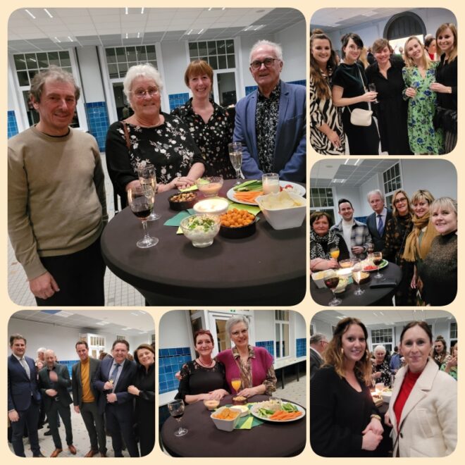 Een fijne nieuwjaarsreceptie…een lekker glaasje drank, VELE, GAVARIEERDE, HEERLIJKE hapjes én de gelegenheid elkaar te ontmoeten…de personeelsleden van de vier scholen, de gasten onder wie stadsbestuurders, die ook maar heel even kwamen groeten door de nieuwjaarsreceptie in het stadhuis om 19.30u.