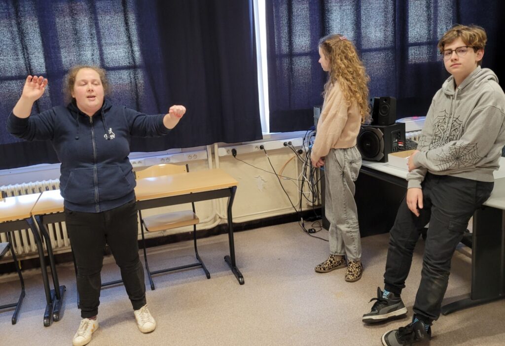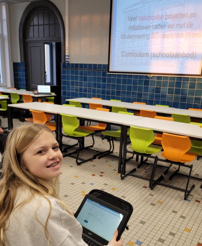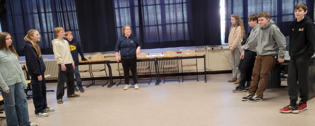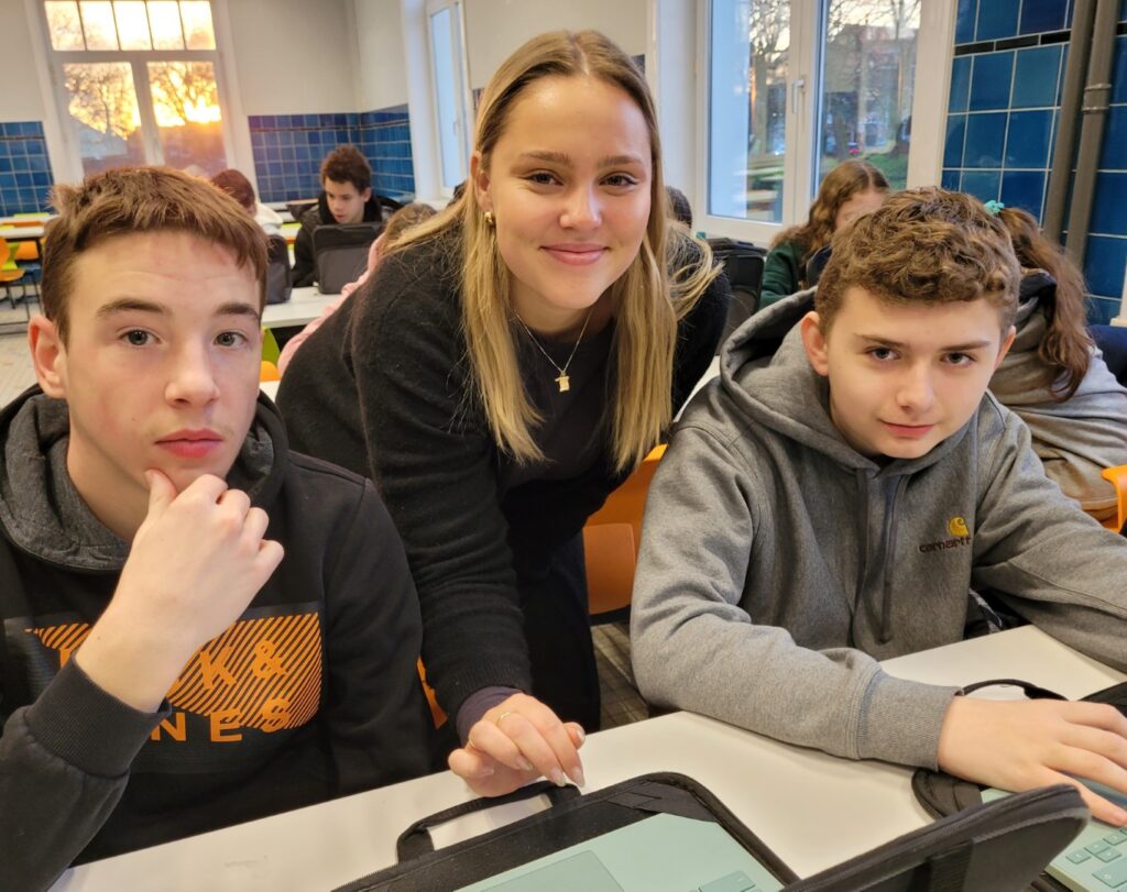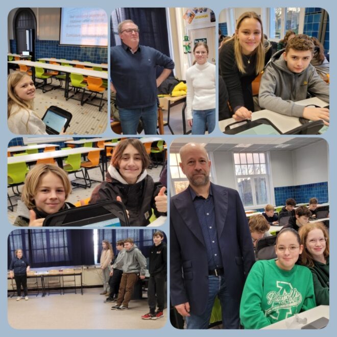 Het eerste deel van de dag bestond uit onthaal en oriënteringstesten. Daarna konden de leerlingen workshops beleven…zeesport, improvisatie (met BIES, een Brugs gezelschap voor improvisatietheater en met Peter Lips), TAMBOERI, een Brugse vereniging die creatieve, therapeutische, muzische en educatieve activiteiten aanbiedt)