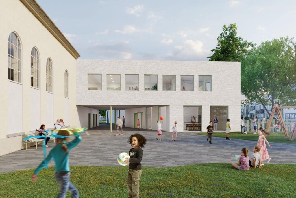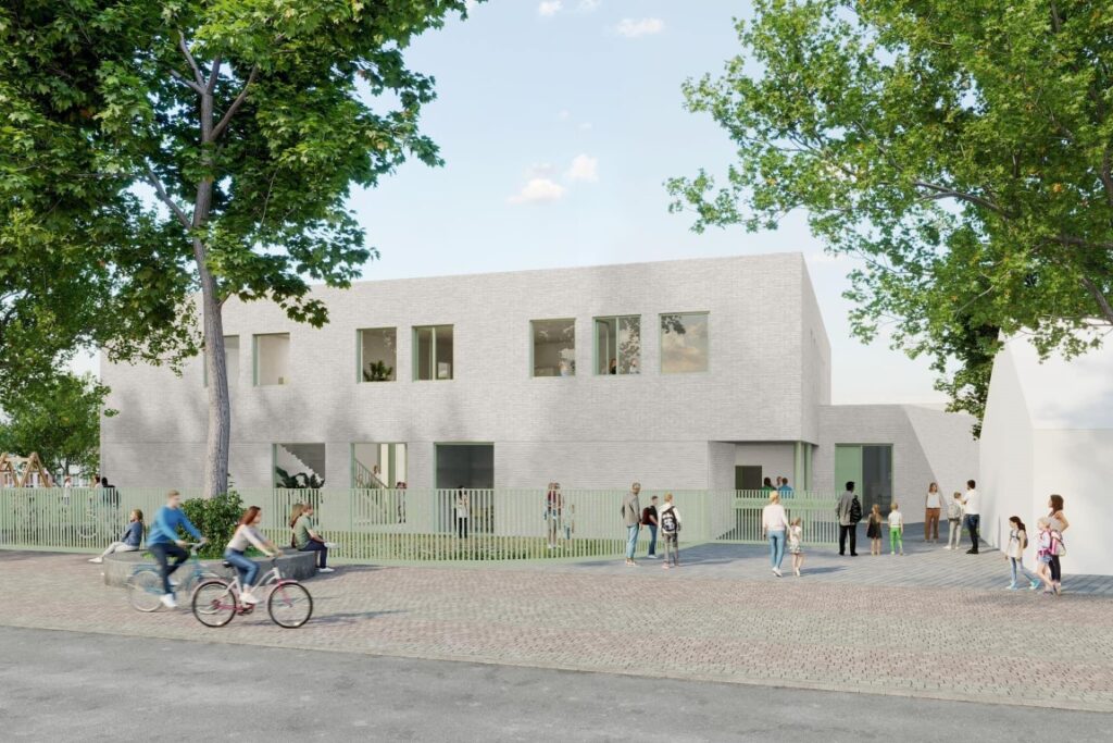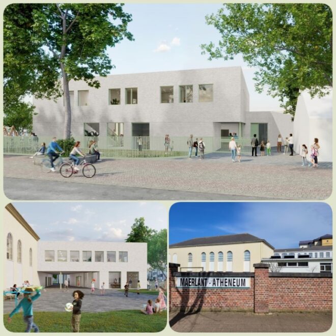 Een nieuwe vleugel komt er voor de derde graad d’Oefenschool. Hiervoor worden het sanitaire blok en het CLB-gebouw gesloopt. Nieuwe douches en toiletten worden gebouwd aan de zijde van de Maerlant-speelplaats; de bogen die men in het hoofdgebouw ontwaart, krijgen hier navolging. . Aan de Vredelaan wordt een nieuwe, ruime ingang gebouwd…en voor d’Oefenschool, voor de derde graad, bouwt men een nieuwe vleugel