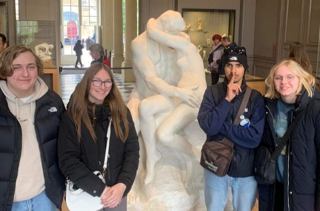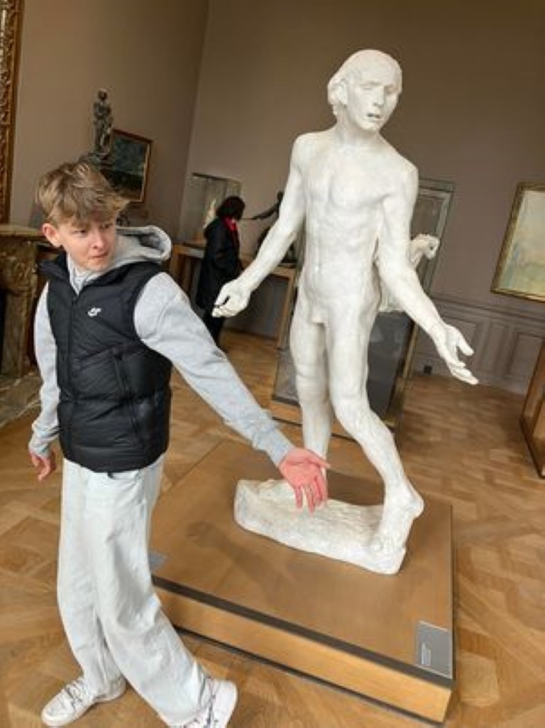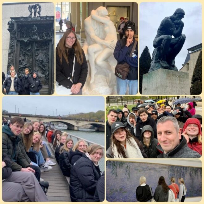 Reisleider Nils Croes schrijft : Vandaag valt het weer tegen, maar het deert ons niet. Met een wandeling slaan de Eiffeltoren met boottocht op de Seine, een bezoek aan Musée Rodin en L’Orangerie. De leerlingen genieten van de waterlelies van Claude Monet en Le Penseur van Auguste Rodin.