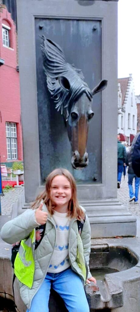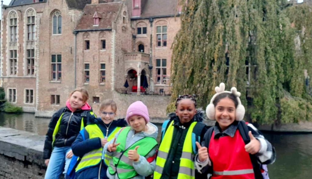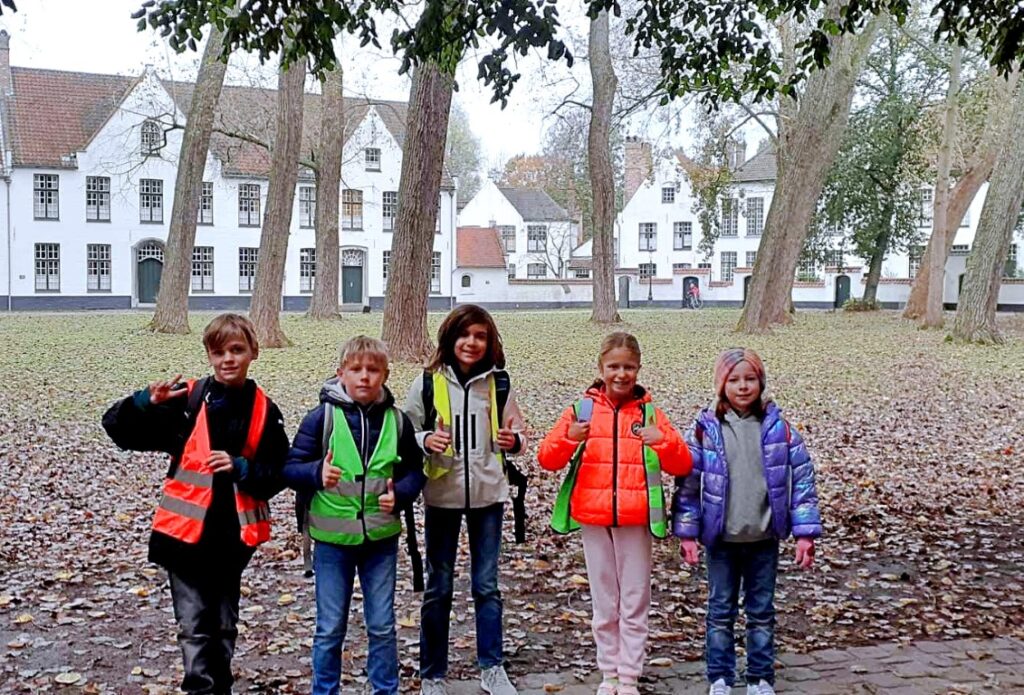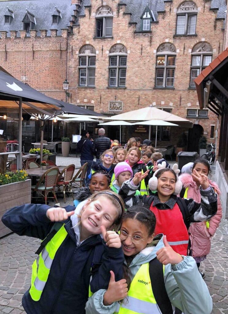 Aan het echte werkbezoek (opdrachten uitvoeren in het VOLKSKUNDEMUSEUM) ging een bezoek aan enkele plekjes in Brugge vooraf, op het werkbezoek volgden nog bezoekjes van mooie Brugse bezienswaardigheden : POERTOREN, MINNEWATER,BEGIJNHOF, ROZENHOEDKAAI , VISMARKT, JERUZALEMKERK e.a.