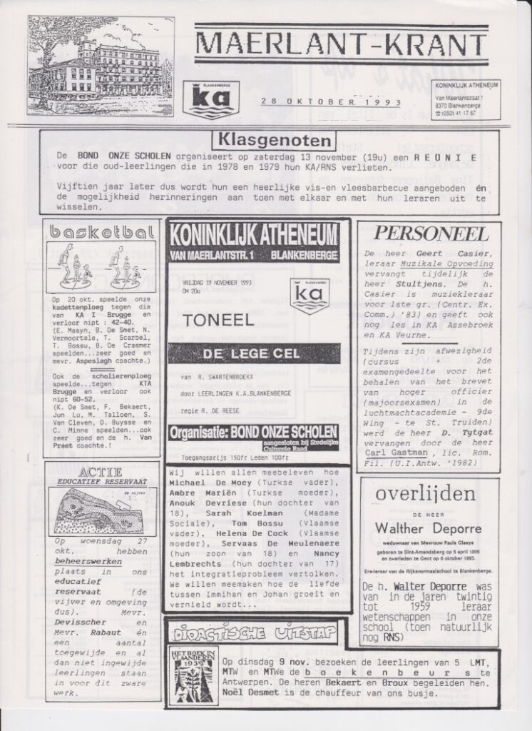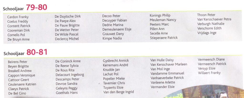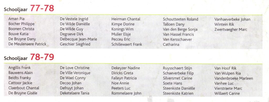 RNS/KA/MAERLANT-ATHENEUM heeft een traditie van reünies, kleine van één schooljaar, van vier soms (1978-1981), zoals 30 j. geleden, in 1993…Enkelen onder hen, ook leraren, waren op 7 okt. op het jubileumfeest