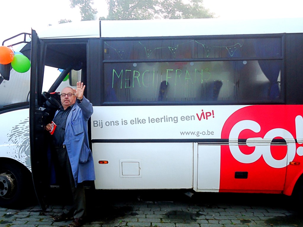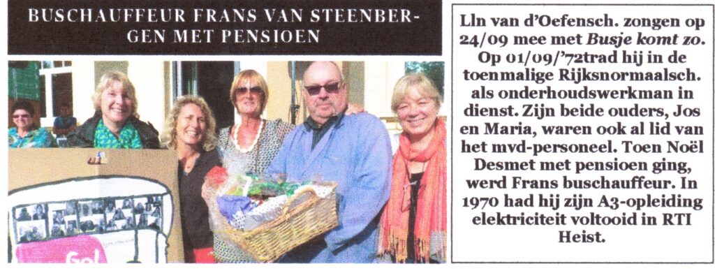 TIEN jaar geleden ging mvd-personeelslid én BUSCHAUFFEUR FRANS VAN STEENBERGEN met pensioen. Velen, ook de lagere schoolkinderen d’Oefenschool, vierden hem.