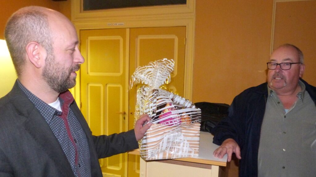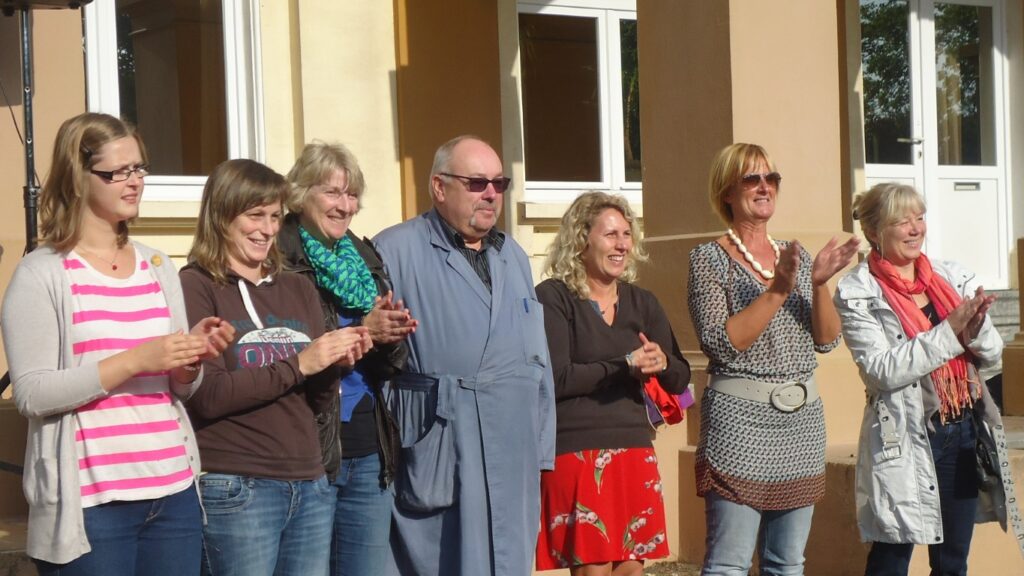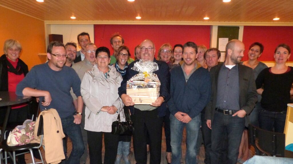 Frans’ echtgenote Nadine Witgeers, ook enkele jaren mvd-personeelslid, viert mee