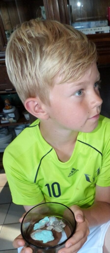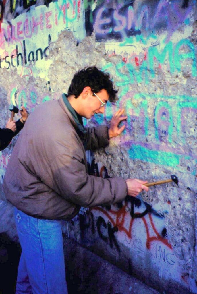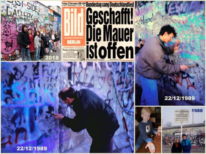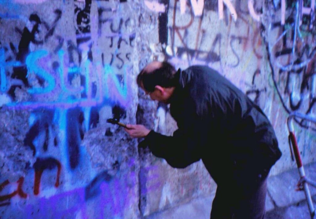 In een kastlade van een oud-leraar Duits liggen turkooisgroene en violetblauwe schilfertjes door hemzelf en met hamertjes gewapende leerlingen van toen als spechten uit de Muur geslagen. Ze herinneren aan die fameuze post-examendagen van 1989.