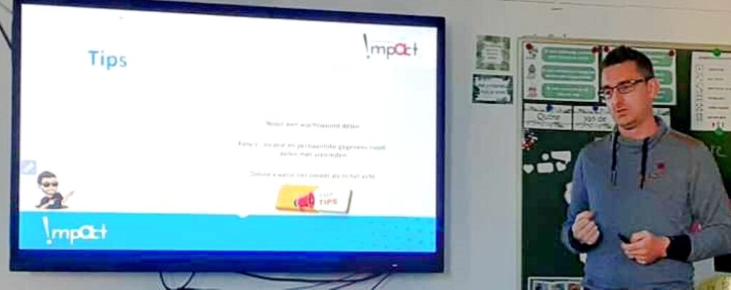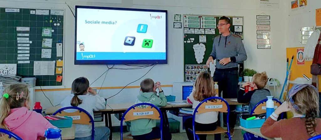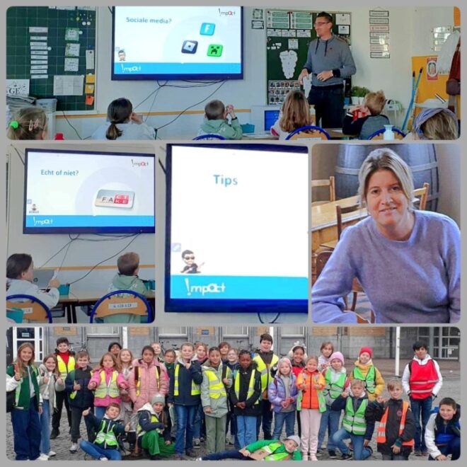 Gisteren kregen de leerlingen van het vierde leerjaar bezoek van Glenn Vercruysse, ICT-coördinator Scholengroep Impact!. Hij gaf een boeiende infosessie over omgaan met sociale media. Iets wat niet meer weg te denken is in de leefwereld van heel wat tieners. Ze hebben heel wat bijgeleerd over diverse apps, profiel beveiligen, cyberpesten,… Bedankt Glenn.