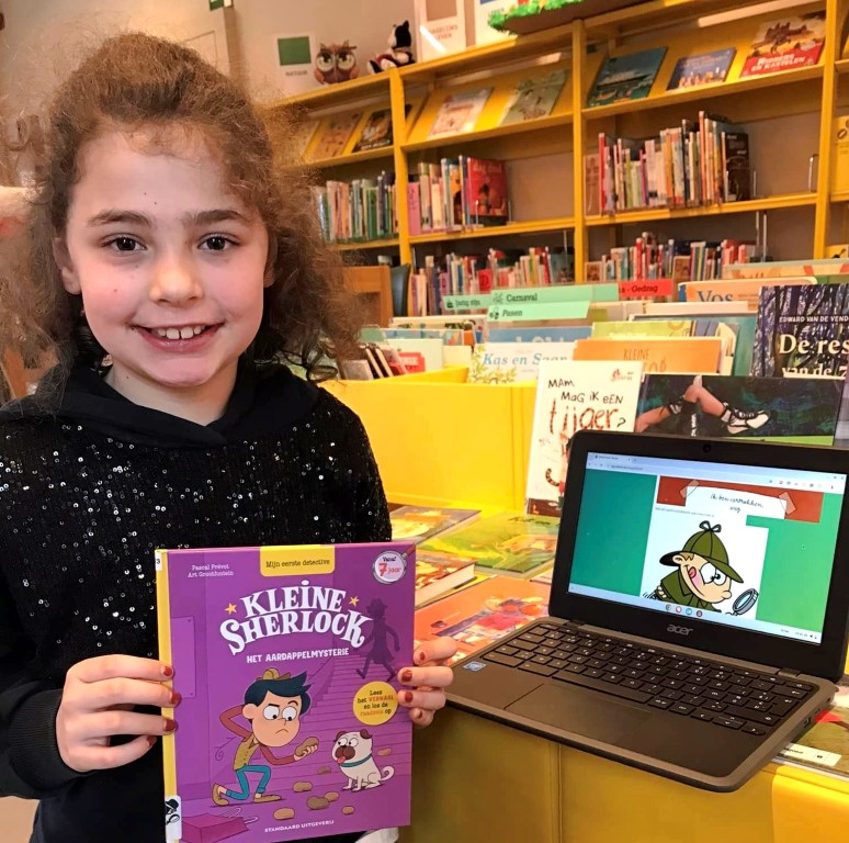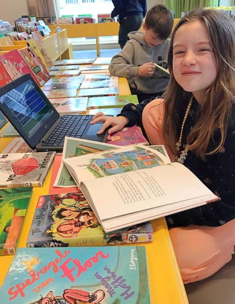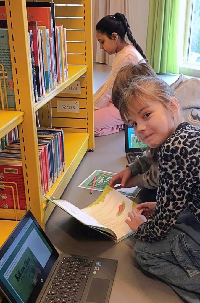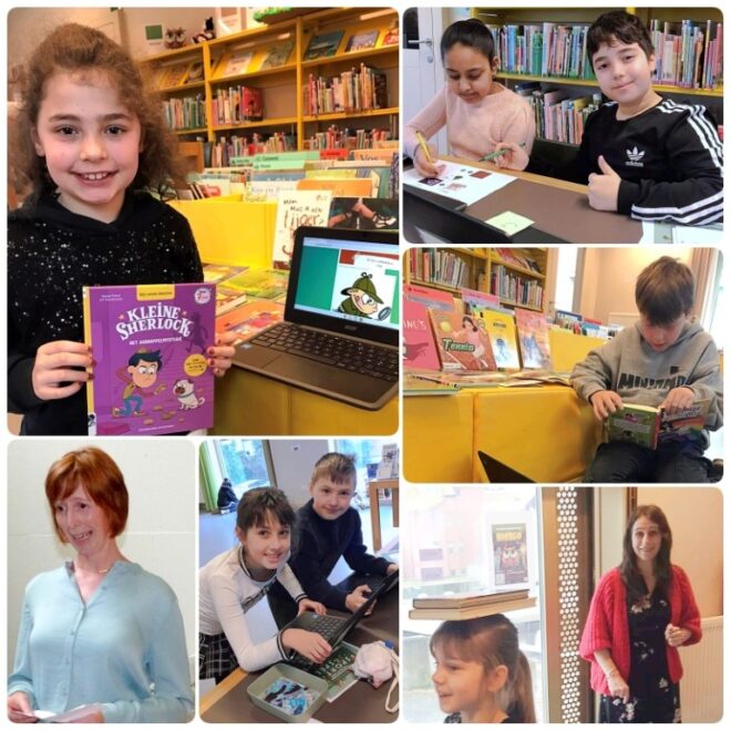 n.a.v. deze jeugdboekenweek een bibspel in de bibliotheek. Ze kregen allerlei opdrachten die ze m.b.v. hun chromebook oplosten. Veel blije gezichten en veel bijgeleerd!