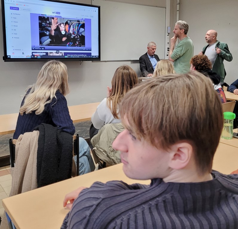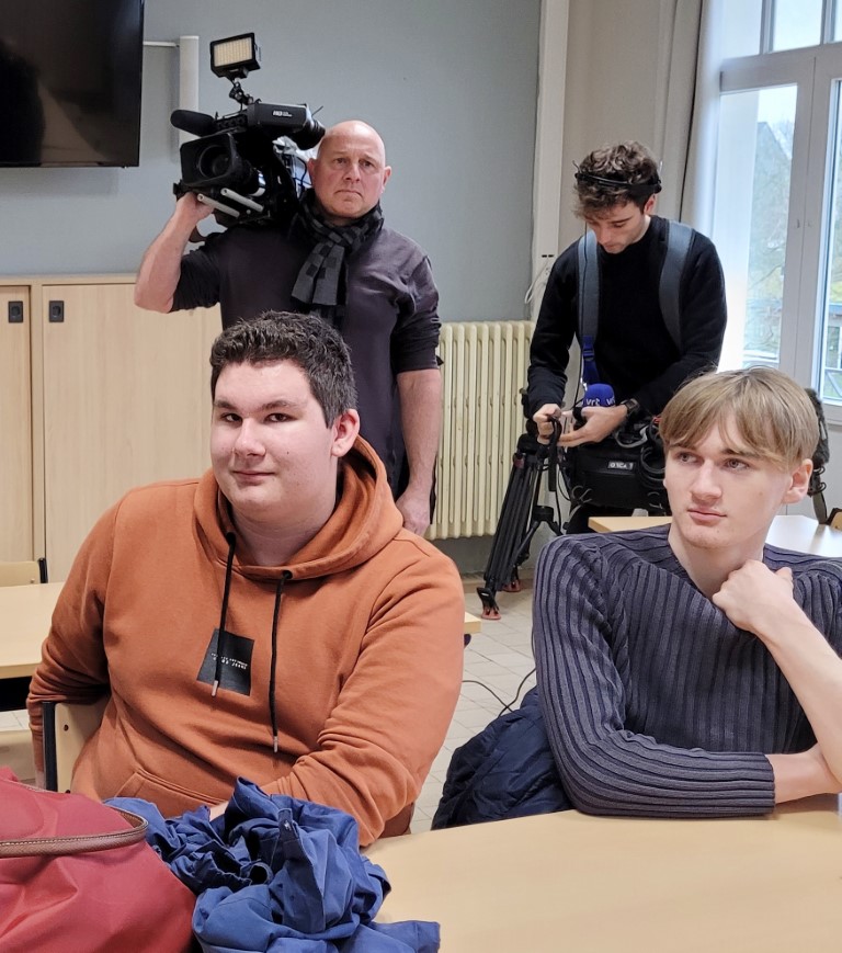 Om 11u was een VRT-ploeg (journalist Stein Falk en twee technici) in het Maerlant-atheneum om ter peilen naar het standpunt van leerlingen van 5des en 6des