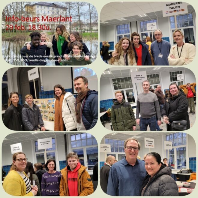 29 februari om 18.30u. INFOBEURS MAERLANT-ATHENEUM. Infostands over de brede eerste graad en alle studierichtingen bso/tso/aso. Rondleidingen en doe-stands. (met foto’s van vorig jaar)