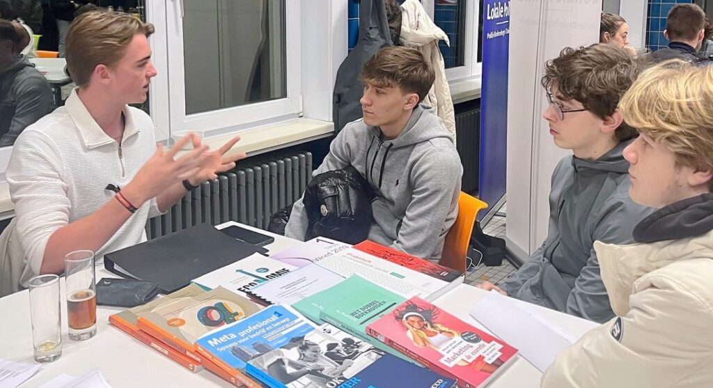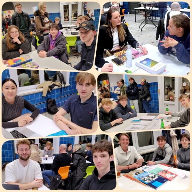 Zo’n studie- en beroepenmarkt is zeker een blijver. De oud-leerlingen vonden het prettig om hun knowhow te delen met de leerlingen die dit jaar moeten kiezen wat ze gaan studeren. De van heel nabij betrokken personeelsleden Kira Museeuw, Maaike Boedt, en Magali en Julie Hawkins en Tom Coasert mogen tevreden zijn over de STUDIE-EN BEROEPENMARKT.