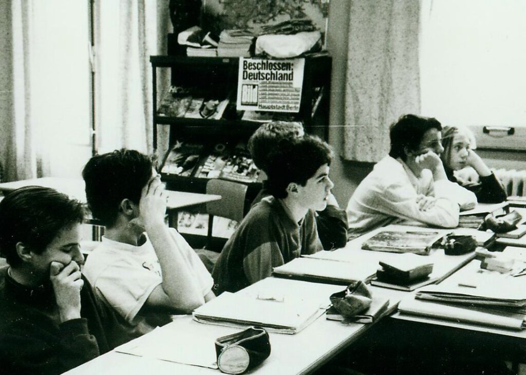 Willy Praet en Frank Verstraete zijn in 1974 nieuwe leraren…voor aardrijkskunde en scheikunde, Caroline Hilderson voor zedenleer.