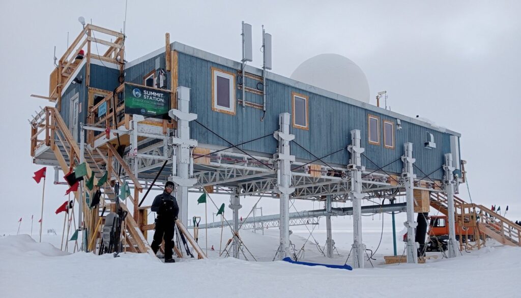 Het centrale experiment in mijn doctoraat in fysica & sterrenkunde aan de VUB, is het Radio Neutrino Observatorium in Groenland (RNO-G). RNO-G wordt op dit moment gebouwd in Groenland bovenop een drie kilometer dikke laag ijs en zal bestaan uit een rooster van 35 detectiestations die astrofysische neutrinos (elementaire deeltjes in ons universum die zeer weinig interageren met hun omgeving) zullen detecteren in een tot nu toe onverkend energieregime. Om dit waar te maken sturen wij elk jaar een aantal wetenschappers naar Summit Station, in het midden van Groenland, die de stations installeren. Deze monitoren de Groenlandse ijslaag voor neutrinos op indirecte wijze via radiogolven. Ook deze zomer hebben wij dus nieuwe instrumentatie in het ijs gestoken en ik focus mij tijdens mijn verblijf hier vooral op kalibratie van onze detector. Dit jaar houdt dat vooral het in kaart brengen van de voor ons relevante fysische eigenschappen van de ijslagen hier uit. Deze hoog gelegen (3,2km boven zeeniveau) Arctische tundra gecombineerd met de afgelegenheid maakt het een extreem bijzondere omgeving om in te mogen werken. Wij komen hier enkel tijdens de zomer, wanneer het meer leefbaar is, maar dan nog blijft het uitdagend. Zo kijken wij bijvoorbeeld uit naar de eerste zonsondergang hier, die pas over twee weken komt. De afgelegenheid houdt in dat je veel luxe van het dagelijkse leven moet laten vallen en er overal zuinig mee omgegaan moet worden. Sinds het ijsbeerincident van 2018 slaapt men hier gelukkig wel in ingerichte scheepscontainers in plaats van tenten. Desondanks het extreme klimaat is het hier een geweldig leuke plek met een uitzonderlijk goede groep mensen die de boel draaiende houden (en voorkomen dat alles begraven wordt onder sneeuw). Al bij al dus een geweldige ervaring waarvoor ik enorm dankbaar ben aan ons instituut in Brussel om dit voor mij mogelijk te maken. Als winterpersoon en passievolle astrofysicus is dit werkelijk een droom die uitkomt!