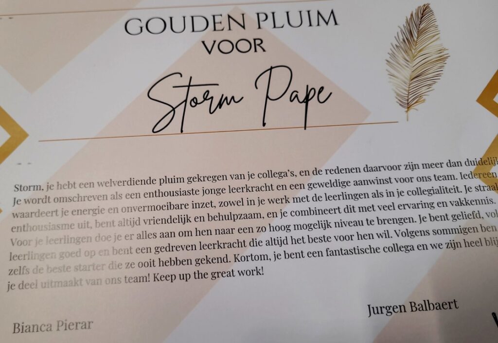 Maerlant-oud-lle 2000 Bianca Pierar stond in voor zijn aanvangsbegeleiding. Samen met directeur Jürgen Balbaert schreef zij de beoordeling: