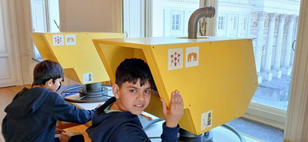 In het 4de lj. leert men over de Belgische monarchie, ook over de Belgische Omwenteling in 1830, over de koningen van Leopold I tot Filip. In Brussel gingen ze er enkele sporen zoeken op hierboven genoemde plekken. In het Belvue-museum voerden ze moeilijke, speelse opdrachten uit. Leerkrachten Cindy De Wulf en Michel Daschot begeleidden hen.
