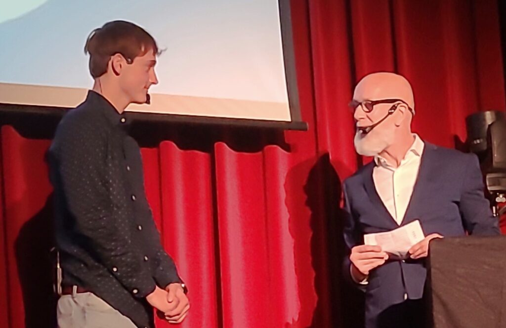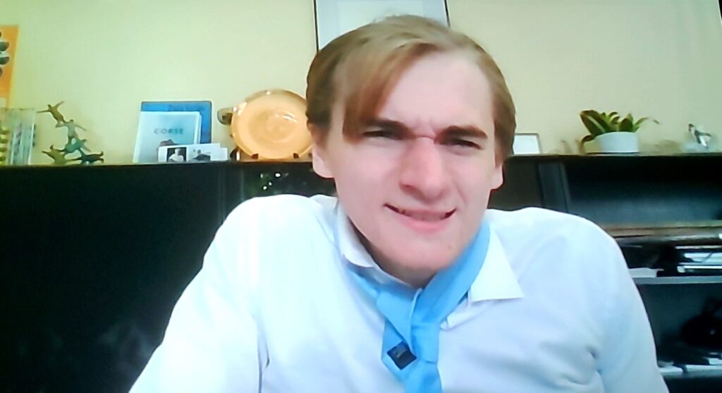 Dan is er een videocall met directeur Balbaert. Eerst zien en horen we Britt Wymeels en dan directeur J. Balbaert, die nu Johannes Balbaert blijkt te zijn.