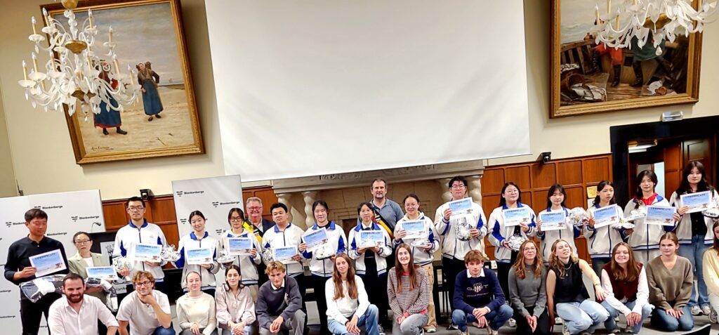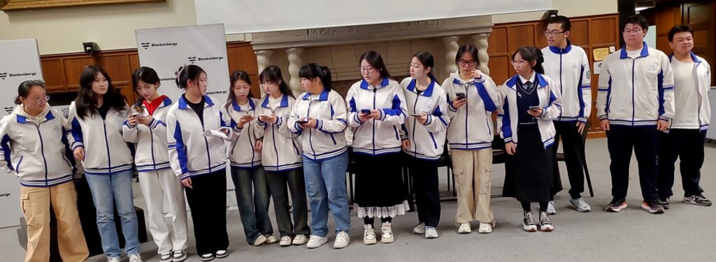 Ik was aanwezig op 03/10/ in de Feestzaal van het stadhuis Blankenbergse. Daar vond de afscheidsplechtigheid plaats van leerlingen en leerkrachten van de BEIJING QIAN XUESEN HIGH SCHOOL. Wat ik hoorde en zag wees zo duidelijk op de waarde van een dergelijke uitwisseling met leeftijdsgenoten uit een zo ver en vreemd land, dat ik concluderen moet dat men verder moet streven naar zulke contacten. Ze zijn menselijk belangrijk in deze wereld.