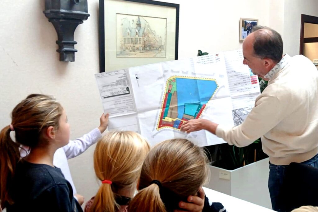 Stadsmedewerkster Pascale Guns was het die de leerlingen wegwijs maakte in het stadhuis. Zij gaf uitleg bij enkele stadsdiensten, toonde de raadzaal met mooie schilderijen en portretten van politici en kunstenaars met veel betekenis voor Blankenberge, verstrekte informatie over burgemeester, schepenen, gemeenteraad.