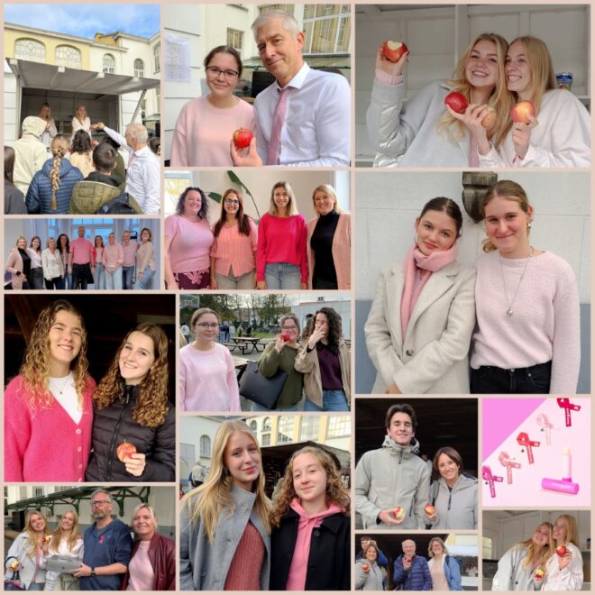 Tal van leerlingen, vooral meisjes, kwamen op aansporen van leden van de leerlingenraad naar school met een kledingstuk aan met een roze tint. Leerlingen die dat roze kledingtintje toonden, konden een roze appel kopen tegen 1 euro, anderen betaalden 1,5 euro. De winst gaat naar borstkankeronderzoek.