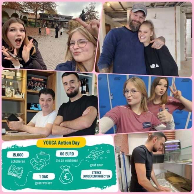 17 oktober Youcadag of dag waarop ook Maerlant- leerlingen van 6 TSO en 5/6 BSO vrijwillig gaan werken voor een betere wereld. Voor de vijftiende keer engageren meer dan 15.000 Vlaamse en Brusselse jongeren zich om een dag aan de slag te gaan bij een bedrijf, een organisatie, een overheid of een particulier. Het loon dat ze op die schooldag verdienen gaat naar projecten van geëngageerde jongeren wereldwijd.