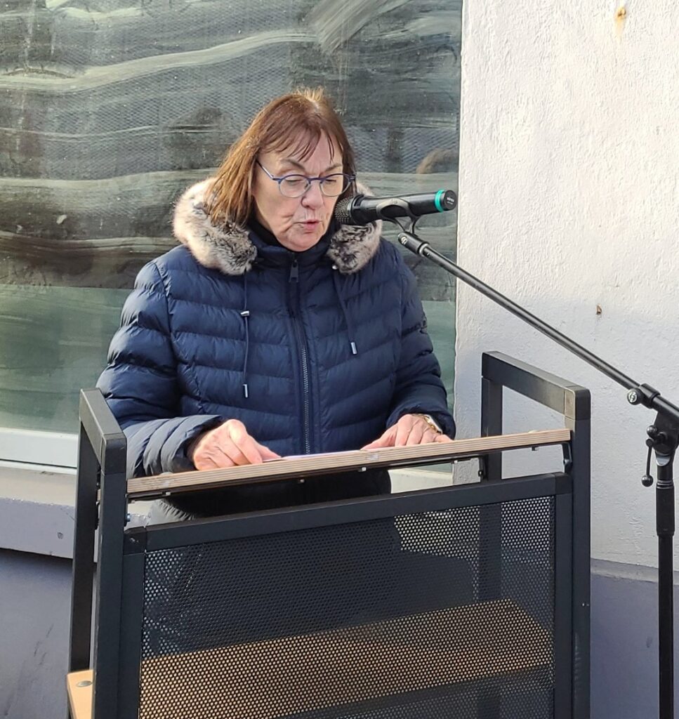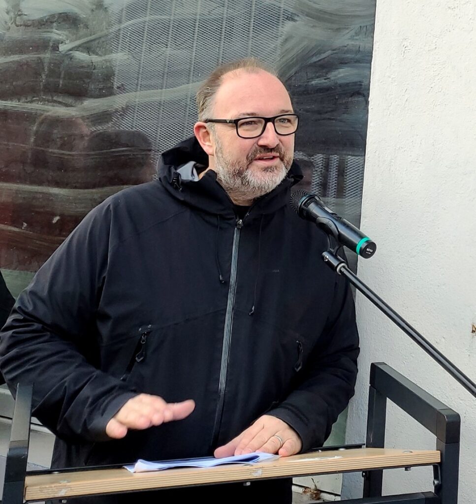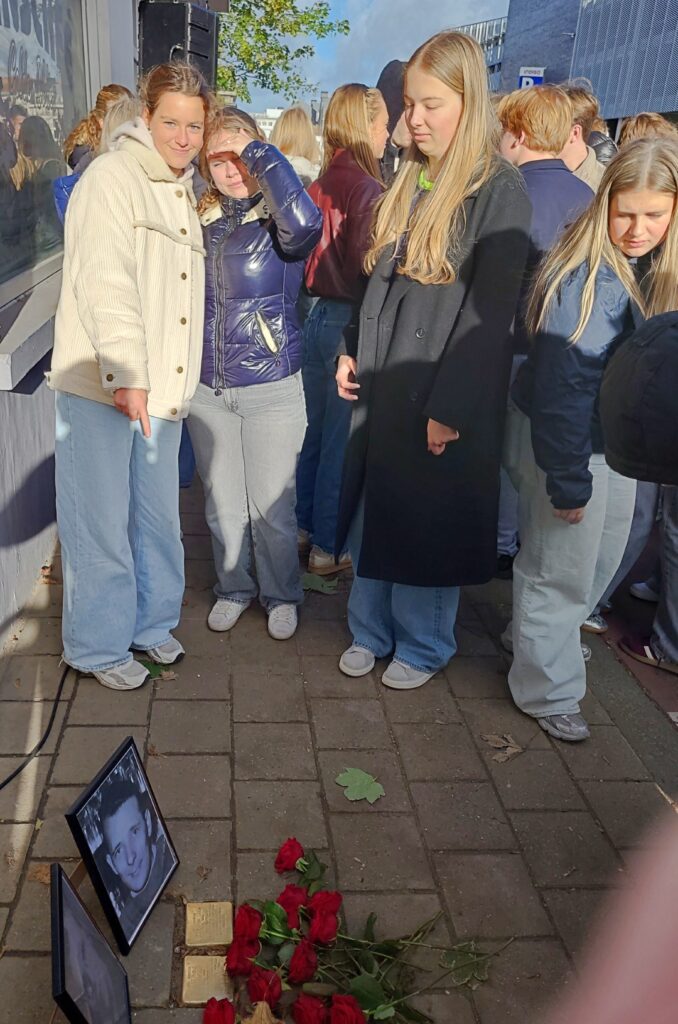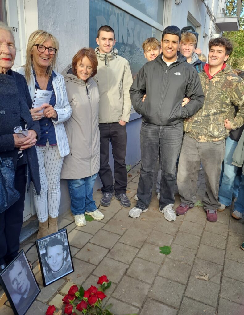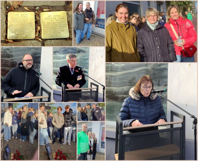 Maerlant-ath. KRISTOF VAN MIEROP, directeur Vrije Tijd Bl’b en Secretaris-Generaal Amicale Internationale KZ Neuengamme is nauw betrokken bij het plaatsen van struikelstenen. Hij speechte bij Kerkstraat 153. Twee verwanten van Lodewijk CAES en Josphine WILMS-CAES herdachten hen.