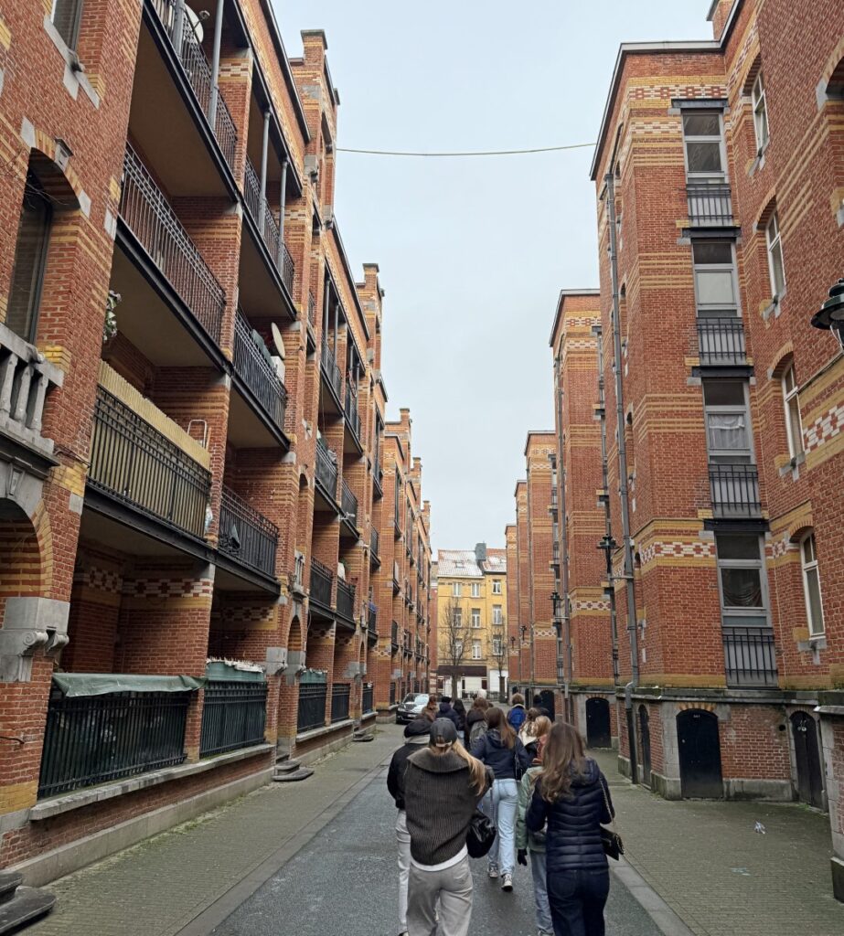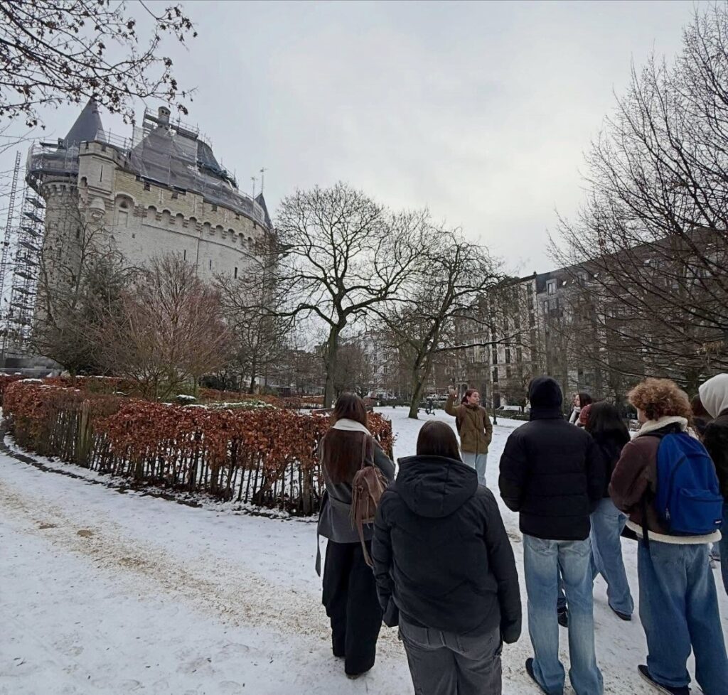 Via Brussel-Zuid wandelden we richting de Halletoren, de Marollen, het Justitiepaleis en Manneken Pis en dan echt het stadscentrum binnen tot aan de Grote Markt. We vulden onze lege magen in het restaurant ‘La Terrasse’ in de Beenhouwerstraat en brachten een kort bezoekje aan Jeanneke Pis net om de hoek. In Bozar, het gebouw van 1928 van de art-nouveau en art-déco-architect VICTOR HORTA ontdekten de leerlingen werken van Francisco de Goya, zijn tijdsgenoten en hedendaagse kunstenaars, die samen verschillende facetten van de Spaanse geschiedenis belichten. Zowel de mooie als de minder mooie kanten komen aan bod.