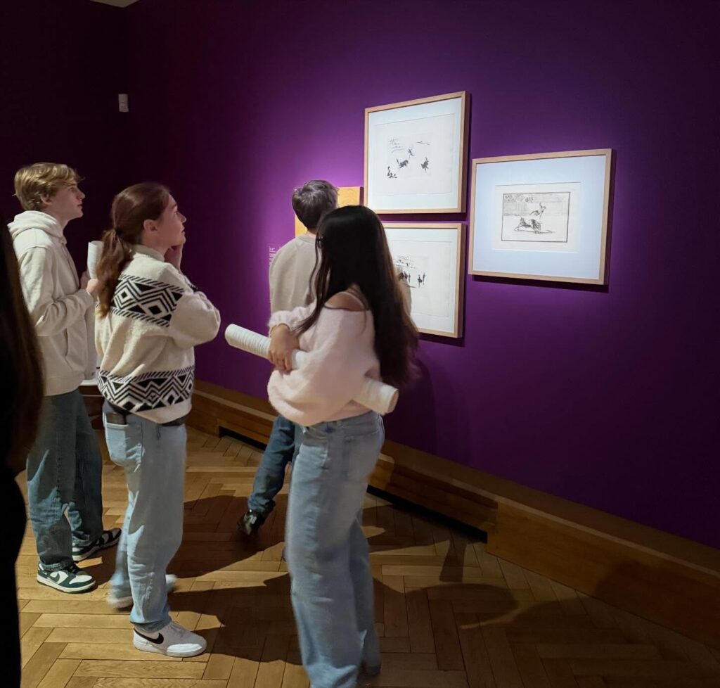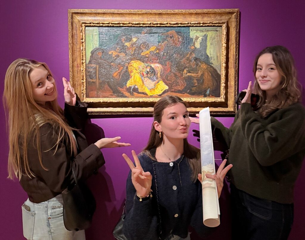 Op de foto’s zien we onder meer enkele leerlingen poseren bij het werk van kunstenaar Hermenegildo Anglada Camarasa (1871-1959) genaamd “Flamenco” (ca. 1901) en bij het werk “Aro de oro” (1999/2025) van kunstenaar Juan Navarro Baldeweg (1939).