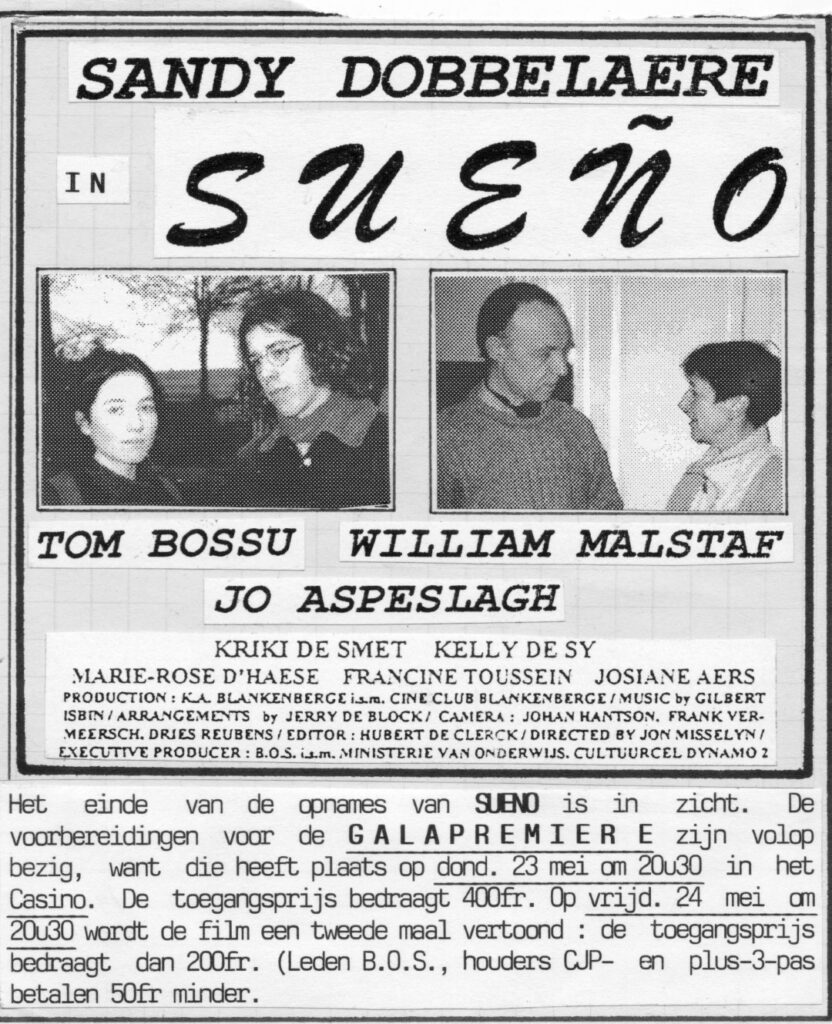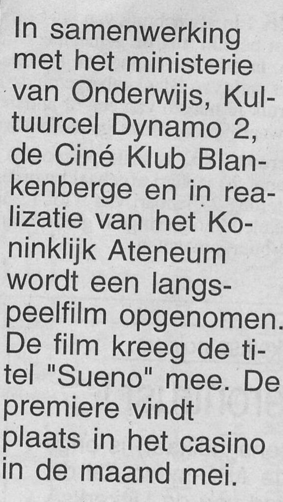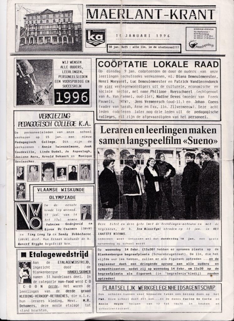 Begin jan. 1996 (voor 30 jaar) begon men in jan. met de opnames van Jon Misselyns (toen leraar Nederlands in het Maerlant-ath., oud-ll. RNS/KA Bl’b. 1972) langspeelfilm SUENO met Sandy Dobbelaere en Tom Bossu (toen Maerlant-lln.) in de hoofdrollen. T
