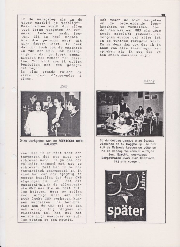 “Wat een mooie herinnering aan een fantastisch leuke schooltijd en lerarenteam.”