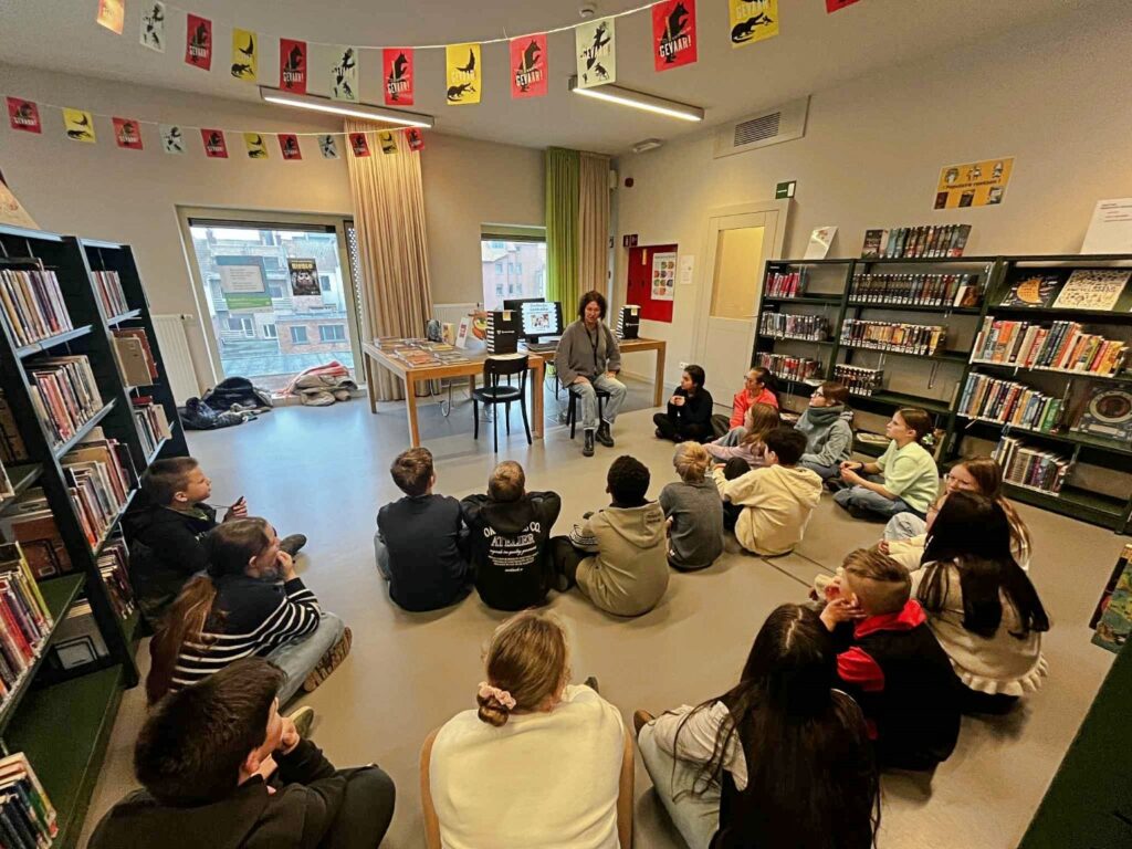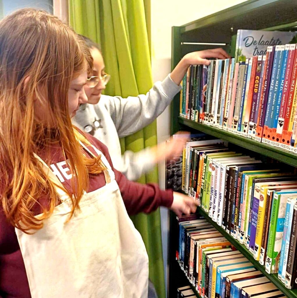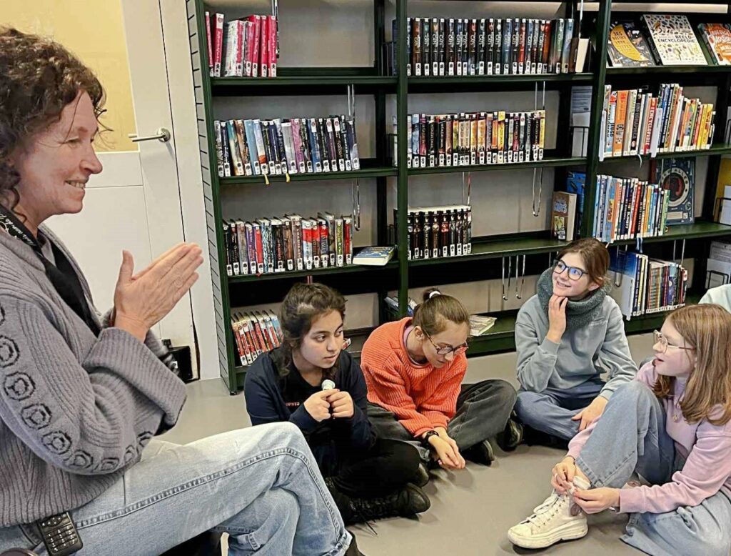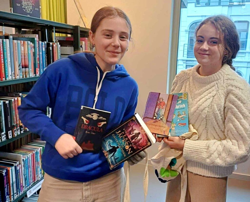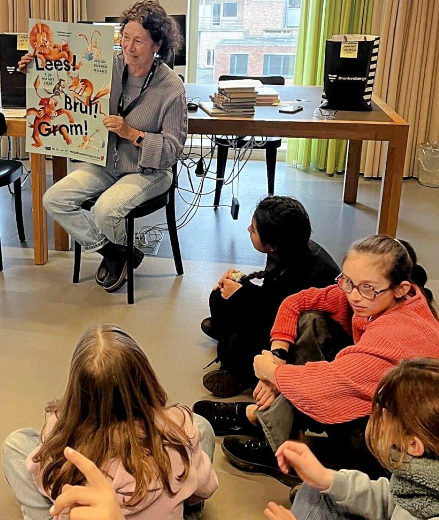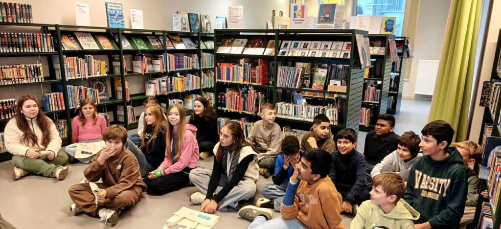Lln. 6de lj. ONS/Vredelaan op bezoek in de bib…start LEESACTIE. Maerlant-oud-lle Inge 1985 Desutter begeleidde hen in het bibgebouw dat ooit de Rijksmiddelbare School was.