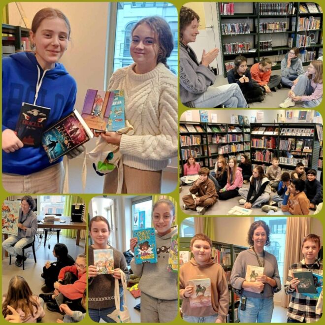 Lln. 6de lj. ONS/Vredelaan op bezoek in de bib…start LEESACTIE. Maerlant-oud-lle Inge 1985 Desutter begeleidde hen in het bibgebouw dat ooit de Rijksmiddelbare School was.