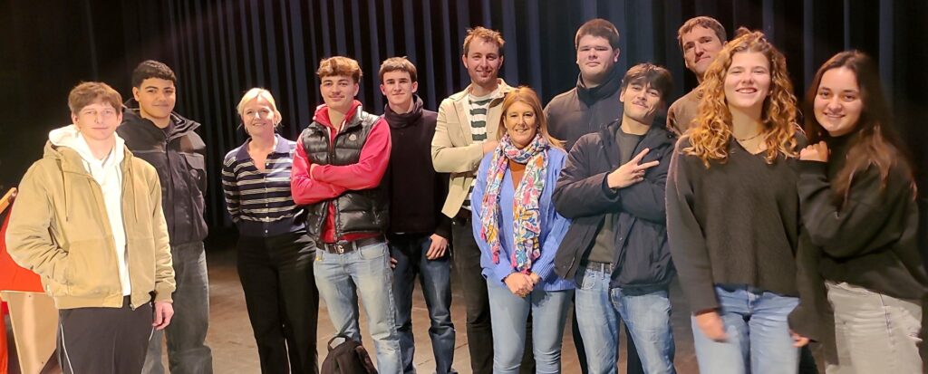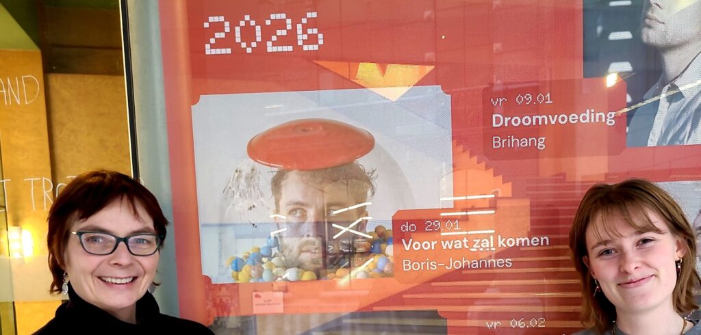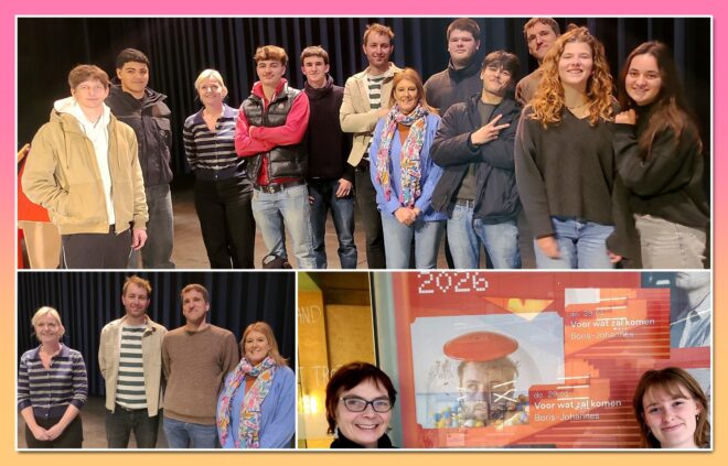 Na de voorstelling ontmoetten we twee Maerlant-oud-leerlingen bij het Casino: HEIKE TRESS, oud-lle 1992 en moeder van twee oud-lln., Jethro Stoffels (2017 en Jindra Stoffels (2019)